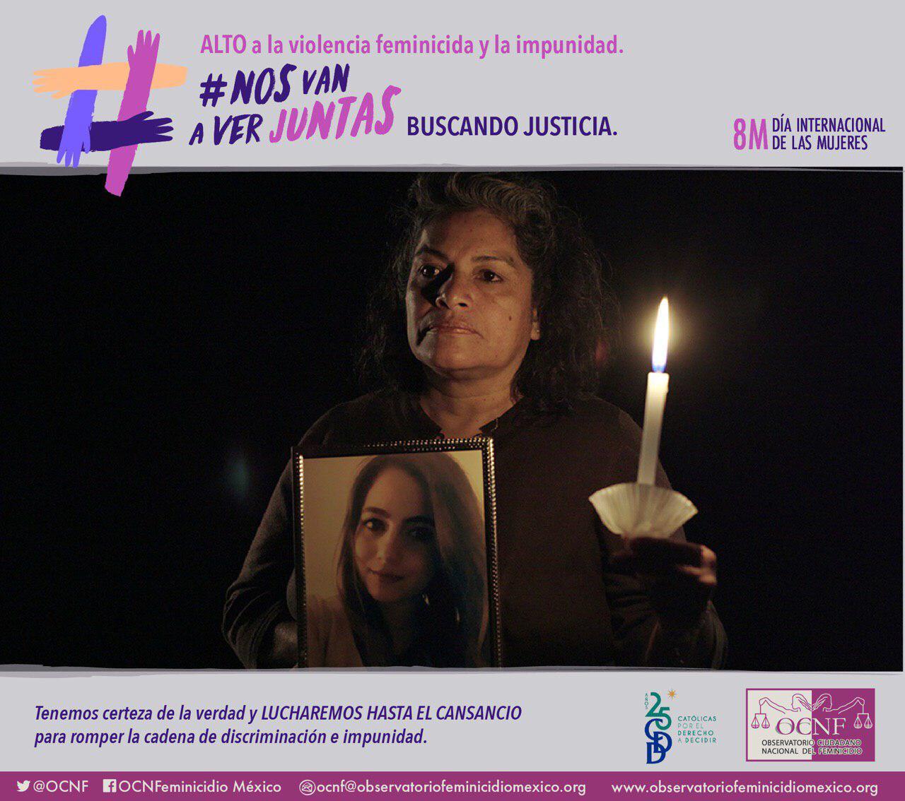 Junto con el Observatorio Ciudadano Nacional del Feminicidio (OCNF), alzamos la voz y reivindicamos el poder colectivo por la justicia ante la violencia feminicida. Lanzamos la campaña #NosVanAVerJuntas con un micrositio y acciones en redes para dignificar la memoria de 18 casos de mujeres víctimas de feminicidio o tentativa de feminicidio, que acompañamos. Así como 11 historias de las madres y padres de las víctimas, quienes han convertido su lucha en un referente en el ejercicio y la exigencia del derecho al acceso a la justicia, la verdad y la reparación.